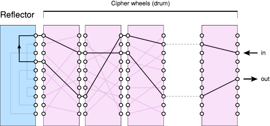 Fialka has a reflector (German: UKW or Umkehrwalze)