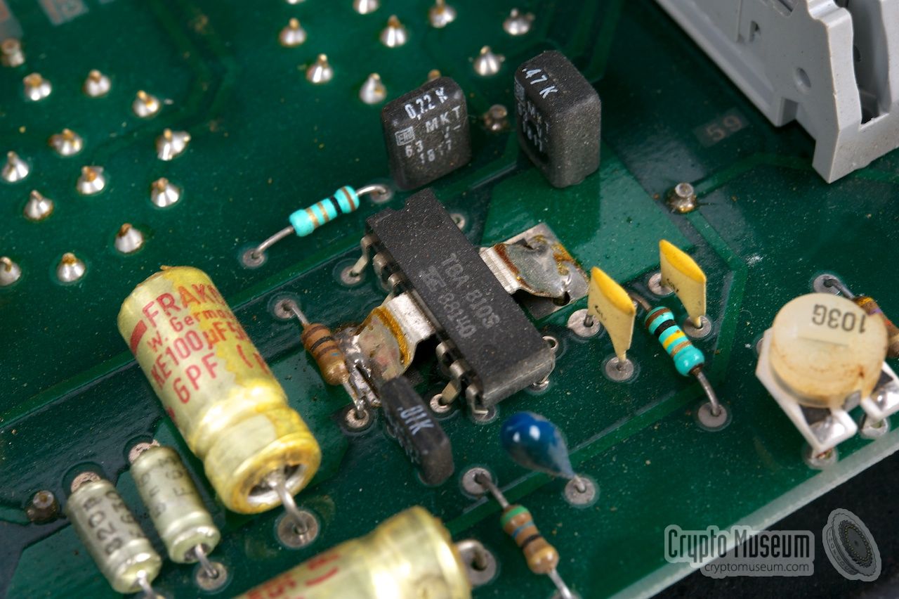 The lowest slot holds the actual digital voice scrambler. A wide ribbon