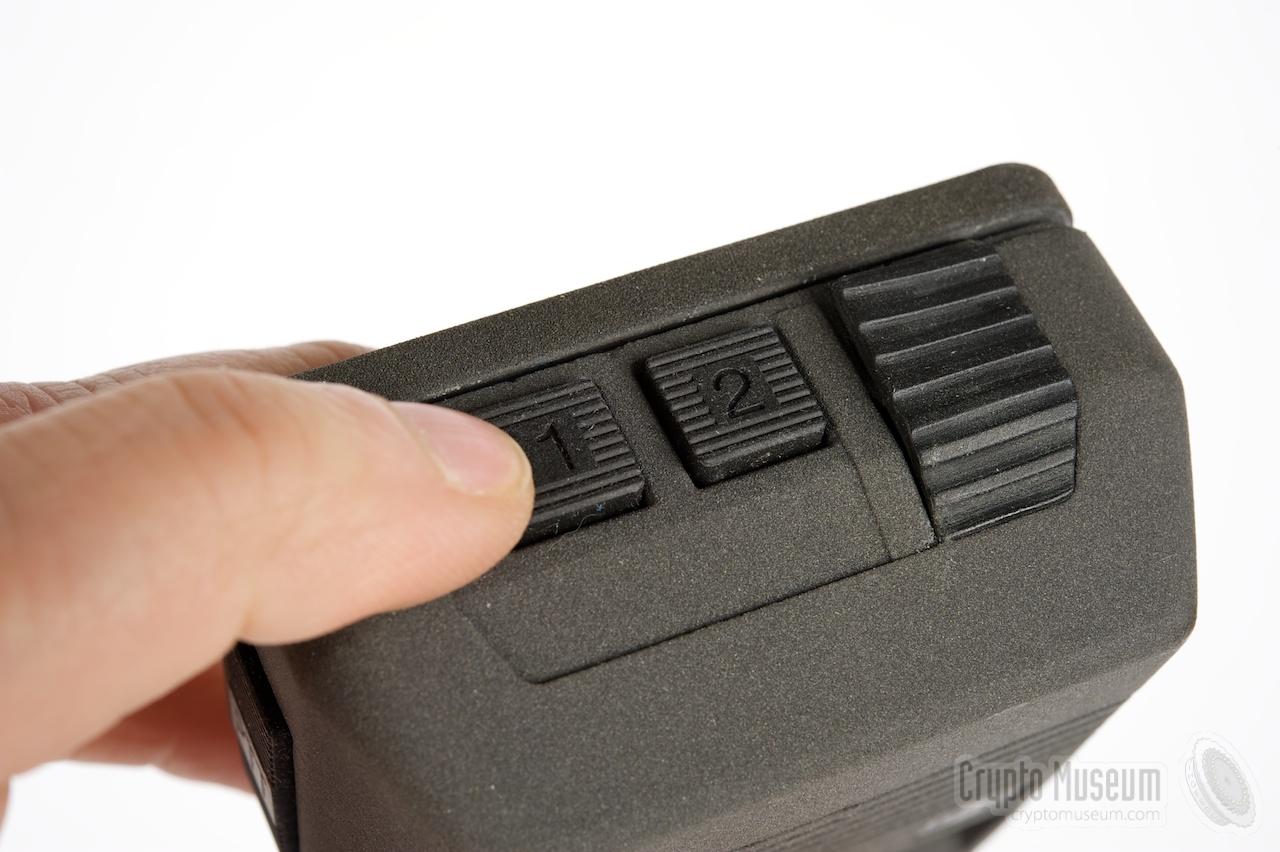 On top of the unit are two buttons, marked 1 and 2, for selection of the