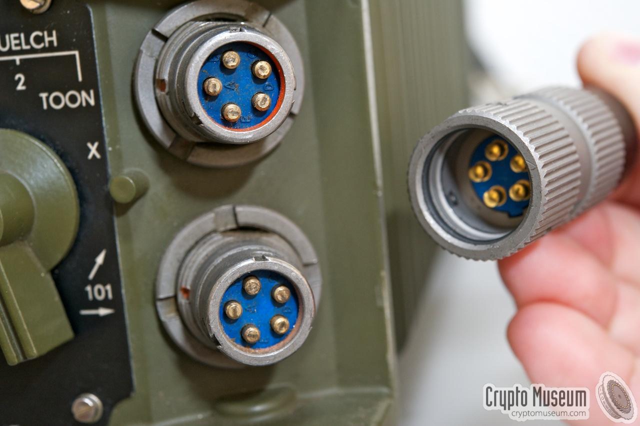 SINCGARS radio, which has two identical 6-pin connectors on its front panel.